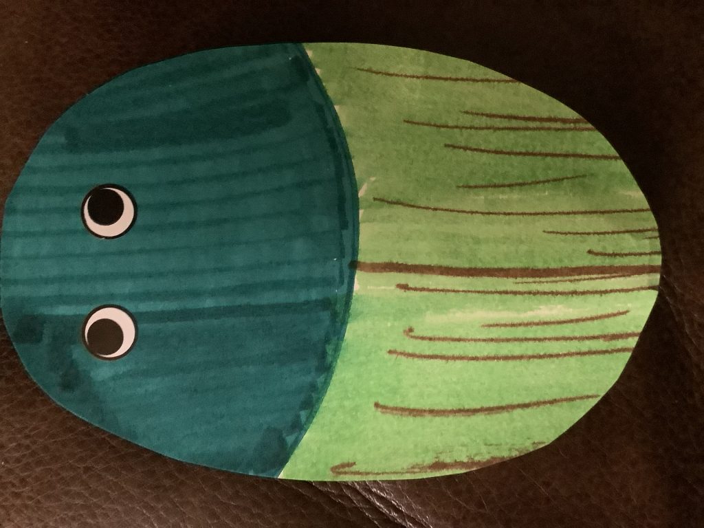Another way would be have your child have fun with fingerpaint on paper. At the end of the play, have your child use a fork to make lines in the paint. Once the paint is dry, help your child to cut big ovals for the beetle’s body and divide the body with a marker in three parts. Help glue the eyes and clothespin. (See picture)