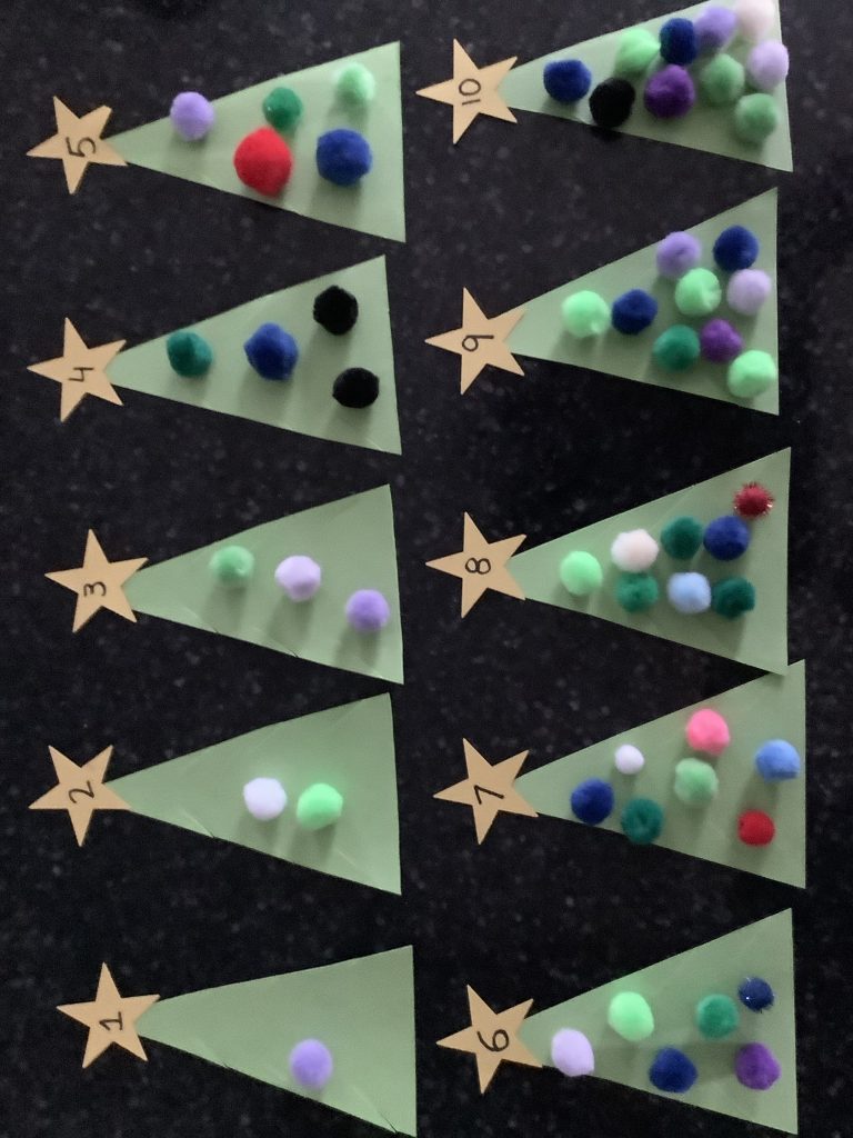 4. Ask your child to place the amount of pompoms to match the number on the star.