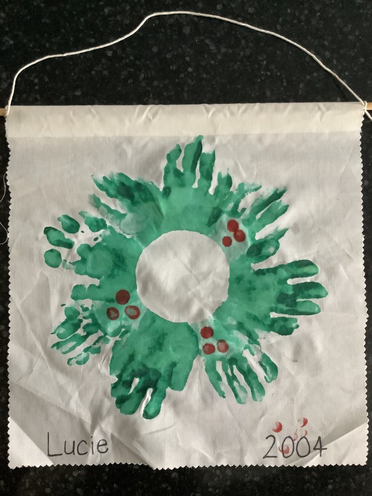 3. Paint your child’s hands and print them in a circle around the white paper circle to make a hand wreath.