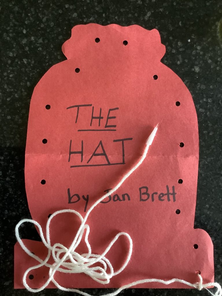 Here is one activity for The Hat by Jan Brett on her website: https://www.janbrett.com/hat_animal_masks_main.htm Print either the masks or a the small images of each animal the hedgehog met. The images can work as props to help your child sequence the story. Your child will create a pocket as an art project to put the small images in.