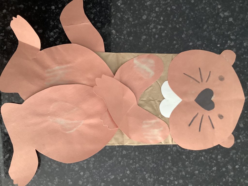 2. Cut out paper groundhog and draw eyes, mouth, whiskers with black marker.